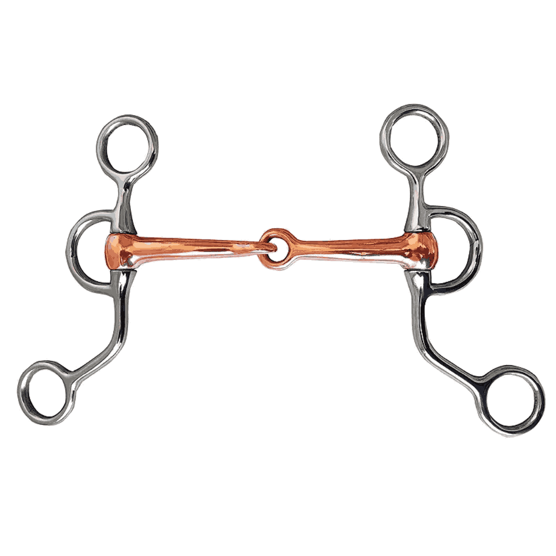 Snaffle Bit mit kurzen Shanks aus Edelstahl in 12,5 cm. Dieses Gebiss eignet sich hervorragend als Übergangsgebiss von einer Ring-Trense zu einer Trense mit längerem Shanks. Kupfer Gebisse geben einen Kupfergeschmack ab, der auf natürliche Weise die Speichelproduktion anregt. Dieser Kupfergeschmack lässt das Pferd stärker schäumen und nimmt das Gebiss besser an.