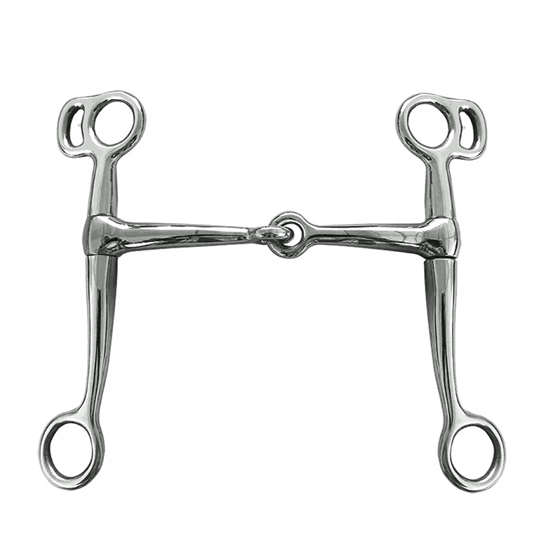 Snaffle Bit mit Shanks aus Edelstahl in 12,5 cm. Dieses Gebiss eignet sich hervorragend als Übergangsgebiss von einer Ring-Trense zu einer Trense mit längerem Shanks. Dieses Gebiss übt nur einen geringen Druck oder Hebel auf das Kinn aus. Die Shanks bewegen sich unabhängig voneinander und ermöglichen so mehr seitliche Flexibilität.