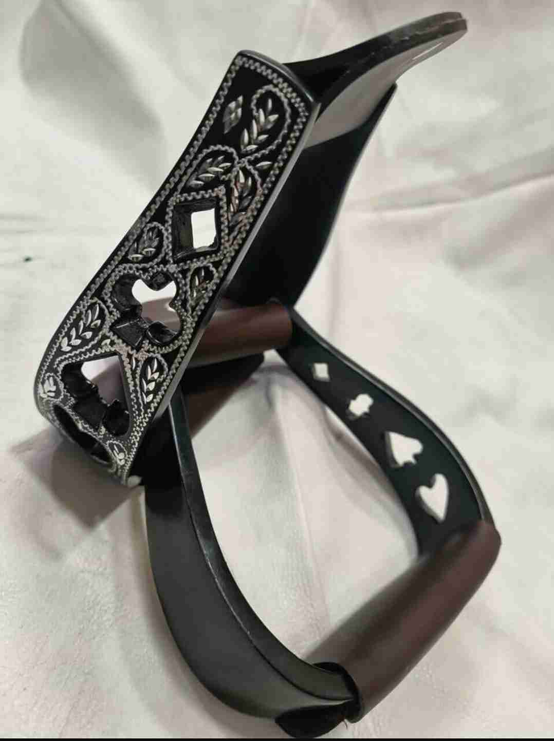 Steigbügel Poker in edlem Schwarz aus Aluminium, sehr schöne Gravur.